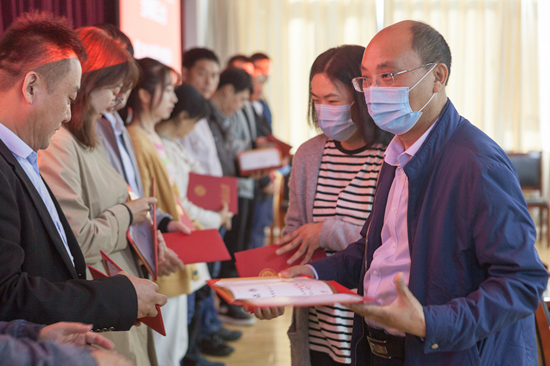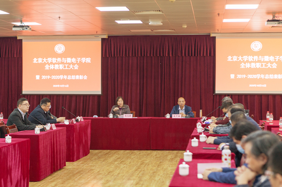 随后,姜淼副书记宣读了“关于授予2019-2020学年‘学院先进个人’称号和‘年度贡献奖’的决定”,吴中海院长和陈向群书记分别为获奖者颁奖。