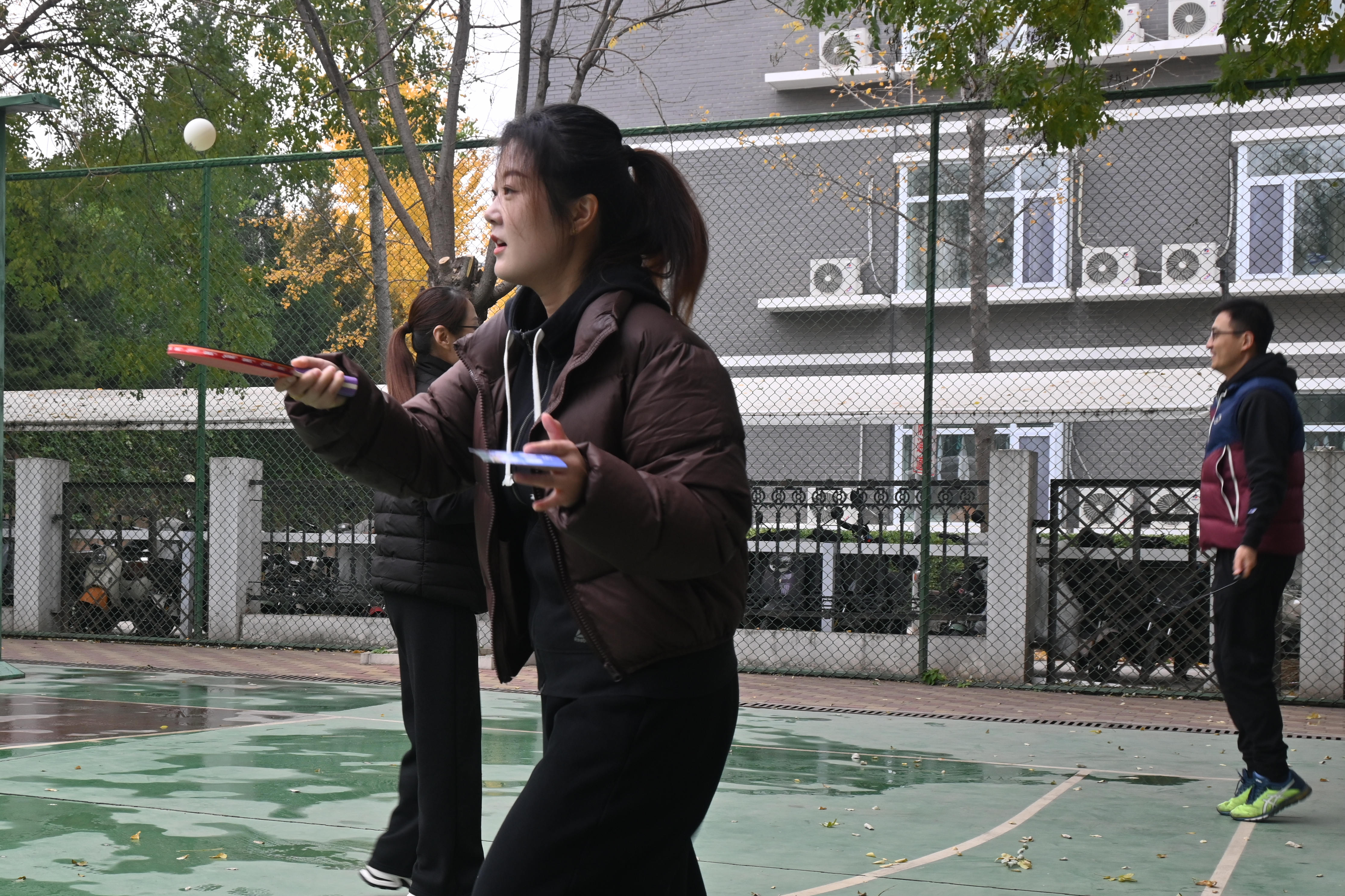乒乓球颠球项目中,教职工们以稳定的手法颠球,每一次成功的颠球都体现了他们的专注和技巧。
